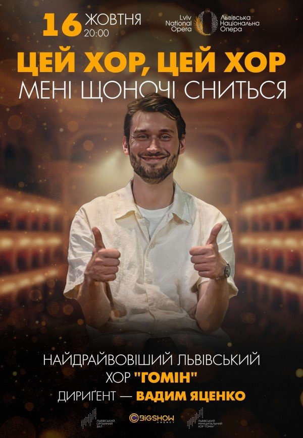 "Цей хор, цей хор мені щоночі сниться". Хор "Гомін" состоится 16 октября 2025, 20:00, четверг в Львовский национальный академический театр оперы и балета им. С. Крушельницкой. С помощью сервиса internet-bilet.ua, Вы сможете с легкостью забронировать, заказать и купить билеты на интересующий Вас концерт, спектакль, оперу, балет, мастер-классы, спортивные и детские мероприятия, оплатив их самым удобным для Вас способом: через интернет банковской картой VISA/MasterCard, наличными или курьером, если сделаете заказ билета c доставкой.