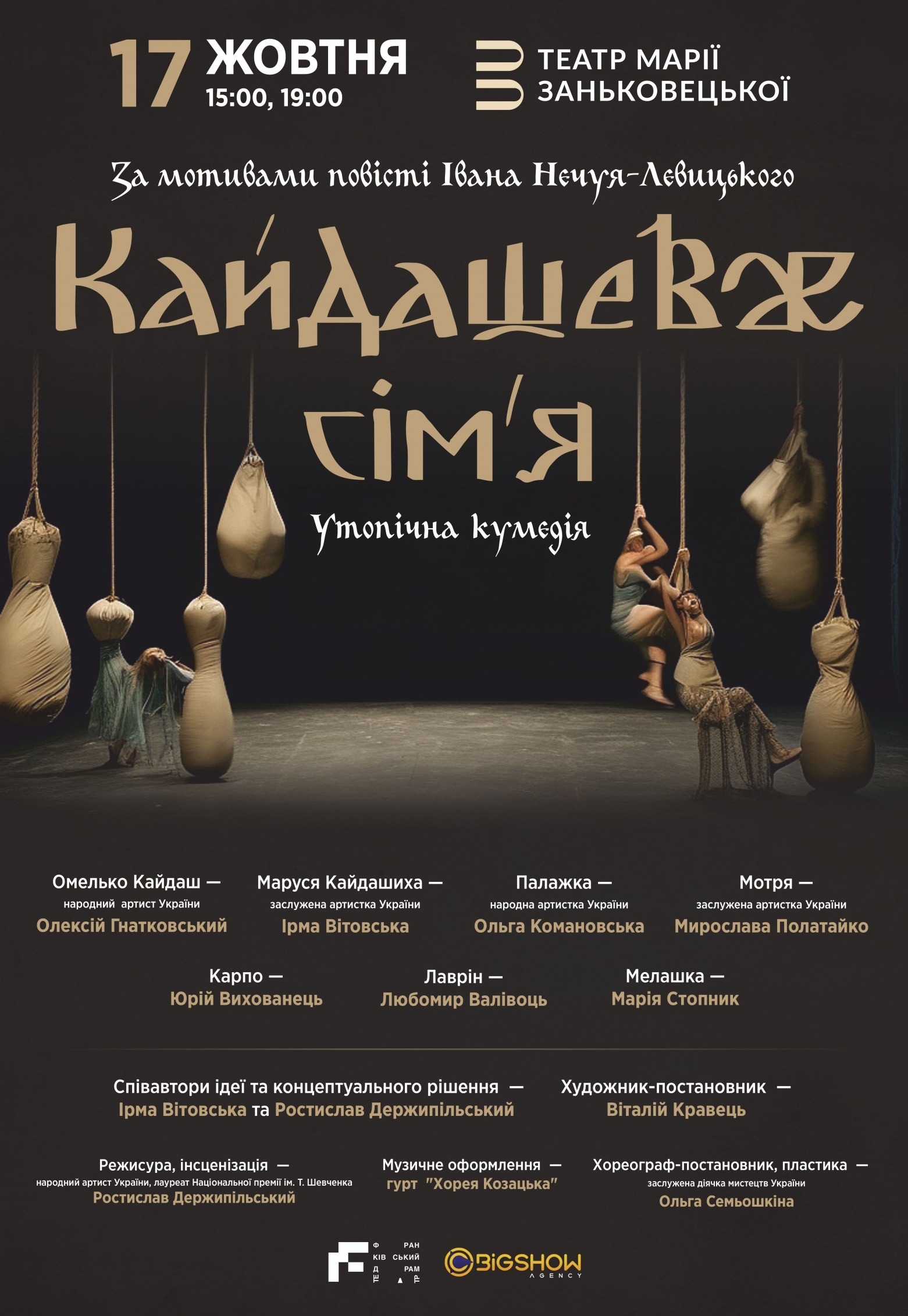 Спектакль "Кайдашеве сім'я" состоится 17 октября 2025, 19:00, пятница в Национальный драматический театр им. Марии Заньковецкой. С помощью сервиса internet-bilet.ua, Вы сможете с легкостью забронировать, заказать и купить билеты на интересующий Вас концерт, спектакль, оперу, балет, мастер-классы, спортивные и детские мероприятия, оплатив их самым удобным для Вас способом: через интернет банковской картой VISA/MasterCard, наличными или курьером, если сделаете заказ билета c доставкой.