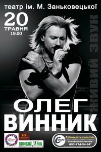 Олег Винник відбудеться 20 травня 2015, 19:00, середа в Національний драматичний театр ім. Марії Заньковецької. За допомогою сервісу internet-bilet.ua, Ви зможете з легкістю забронювати, замовити та купити квитки на концерт, спектакль, оперу, балет, майстер-класи, спортивні та дитячі заходи, що Вас цікавлять, оплативши їх найбільш зручним для Вас способом: через інтернет банківською карткою VISA/MasterCard, готівкою або кур'єром, якщо зробите замовлення квитка з доставкою.
