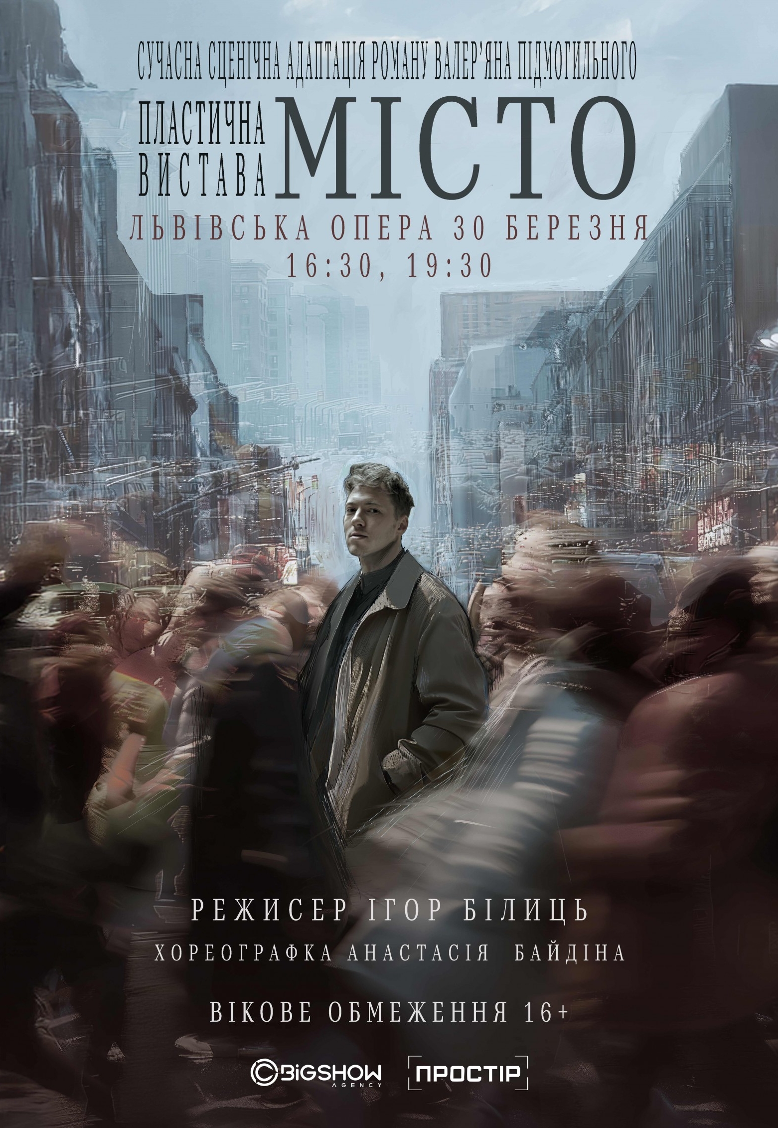 Сучасна пластична вистава «Місто» за мотивами роману Валерʼяна Підмогильного.