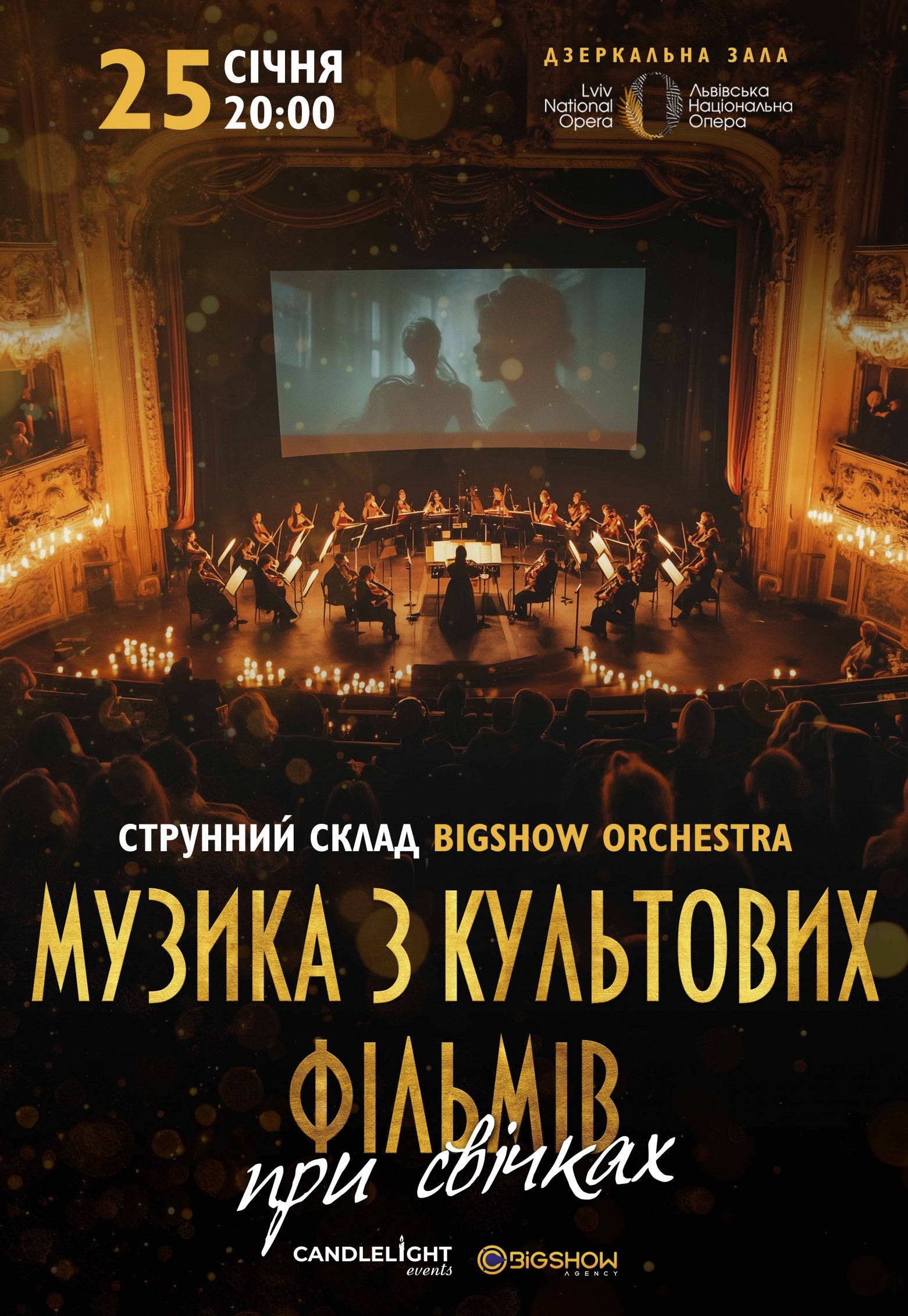 У дзеркальній залі Львівської опери відбудеться подія, яка об’єднає музику, світло і магію кіно. Струнний склад BIGSHOW orchestra перенесе вас у світ саундтреків з легендарних фільмів, які залишили слід у серцях мільйонів.