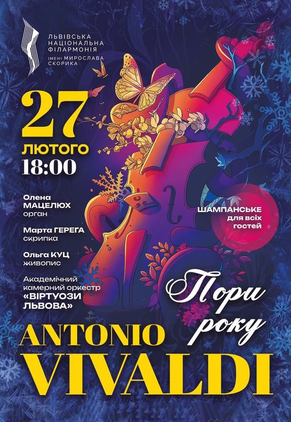 На вишуканій сцені Львівської національної філармонії, у сяйві сотень свічок, оживе безсмертна музика геніального Антоніо Вівальді. Камерний оркестр «Віртуози Львова» у супроводі органу (Олена Мацелюх) та скрипки (Марта Герега) виконають легендарний цикл «Пори року», наповнюючи простір теплом, гармонією та живими емоціями.